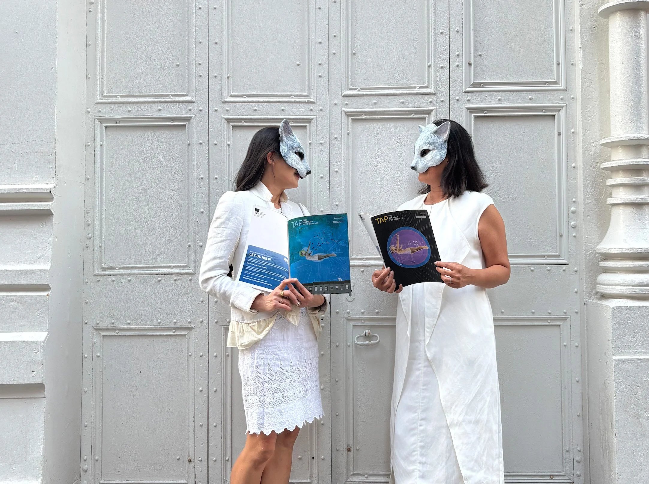 For 59.2, which delves into “the social” and samples psychoanalytic fashion, the TAP team took to the surreal streets of NYC for our first photographic cover shoot. Five hours and hundreds of shots later, we’d captured the lupine charisma of models Melissa Overton (TAP Design Director) and Tati Nguyen (TAP contributor) across four distinct magazine covers.